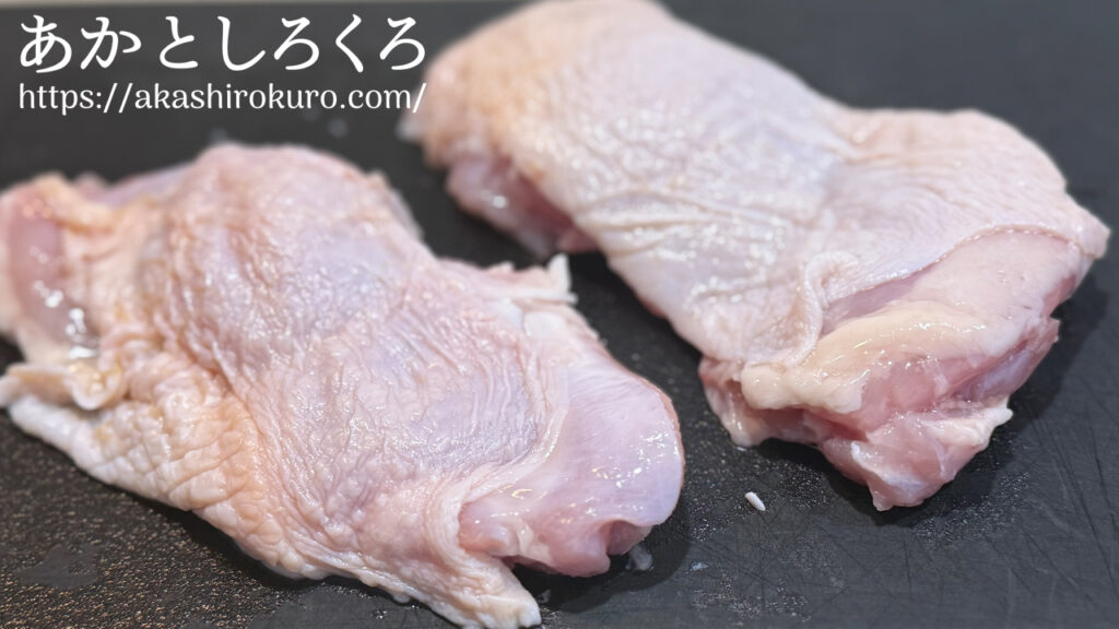 ちょうど鶏もも肉があったのでシンプルに鶏の照り焼きにすることに。↑画像は鶏もも肉1枚を半分に切ったもの。使うのはニンフィア!(わかりにくい)
