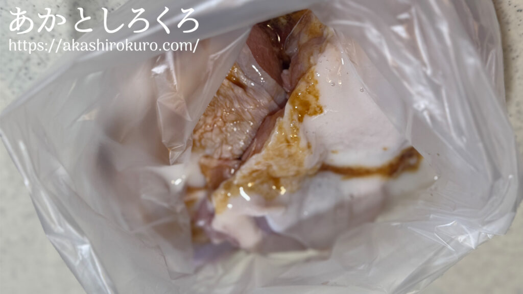 アイラップに入れてモミモミしてから冷蔵庫に放置!本日の夜ご飯まで寝かせます。